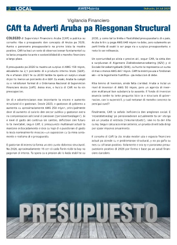 COLEGIO di Supervision Financiero Aruba (CAft) a publica su 2030, y como tal ta limita e flexibilidad presupuestario di e pais.