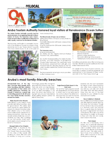 The top reasons for returning to Aruba provided appreciation to the honorees for their contin-