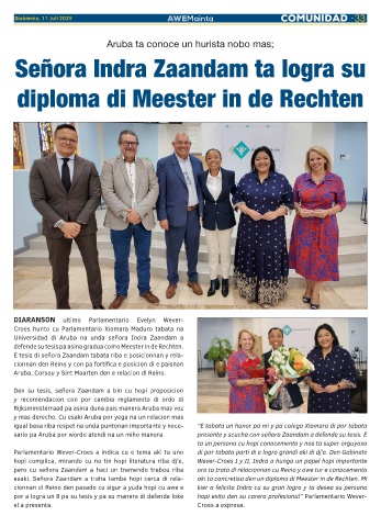 por a logra un 8 pa su tesis y pa su manera di defende loke hopi exito den su carera profesional” Parlamentario Wever-