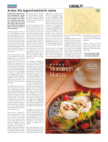 Corobori was old enough, land Venezuela, which we me in our maize plantation.” the island, there were many names are familiar to Aru-