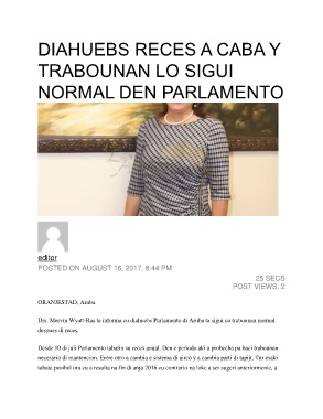 Drs. Mervin Wyatt-Ras ta informa cu diahuebs Parlamento di Aruba ta sigui cu trabounan normal