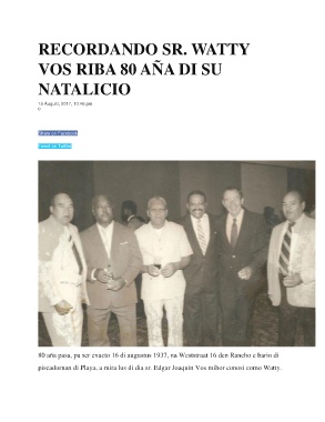 80 aña pasa, pa ser exacto 16 di augustus 1937, na Weststraat 16 den Rancho e bario di
