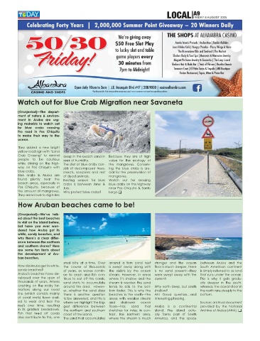 Aruba’s beaches have de- ue to crash and fish con- stream. However, in areas were swept away with the that runs under the ocean.