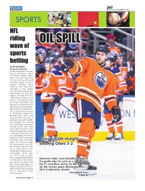 different spreads and sta- an NHL hockey game Wednesday, Nov. 6,