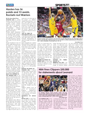 The Clippers were without cic scored 27 points and NBA has fined the Los pers' 129-124 home loss to back games. The NBA has