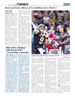 NEW YORK (AP) — Two by Braves GM Alex An- New Orleans Saints quarterback Drew Brees (9) passes in the first half of an NFL football game