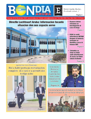 Diamars 25 di November 2025 www.bondia.com Email: noticia@bondia.com Tel: 582-7800 Fax: 582-7044 1,75 Florin