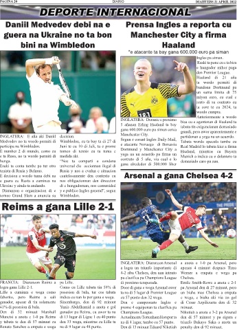 E number 2 di mundo, como cu torneo di tennis cu ta tuma e Dortmund y Manchester City a Haaland, mientras cu Bayern