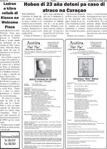 Diahuebs siman pasa notifica Polis. hoben F.G.A.F. di 23 aña cash. den cual caso mas e lo ta