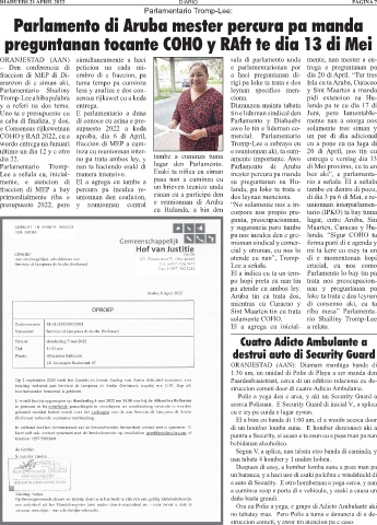 presupuesto 2022, pero y reunionnan central e reunionnan di Aruba “No solamente nos a in- unionnan interparlamen-