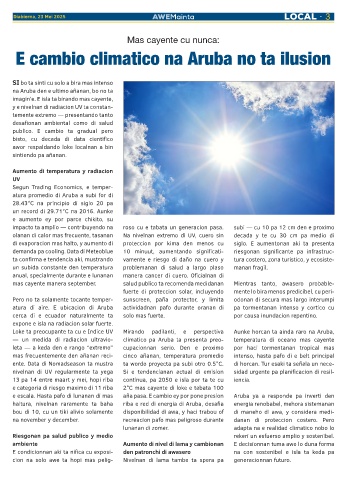 — un medida di radiacion ultravio- climatico pa Aruba ta presenta preo- temperatura di oceano mas cayente