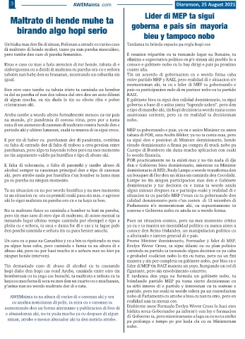 Ola Tropical lo ta den e periodo Maltrato di hende muhe ta Lider di MEP ta sigui