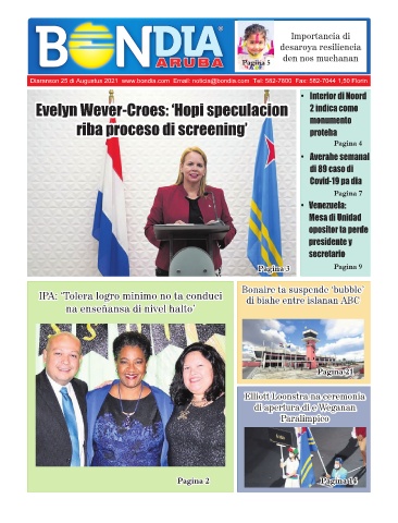 Diaranson 25 di Augustus 2021 www.bondia.com Email: noticia@bondia.com Tel: 582-7800 Fax: 582-7044 1,50 Florin