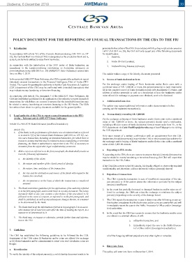 POLICY DOCUMENT FOR THE REPORTING OF UNUSUAL TRANSACTIONS BY THE CBA TO THE FIU
