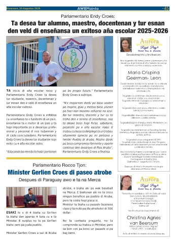 continuo den desaroyo di Pais Aruba”, y atencion brinda.