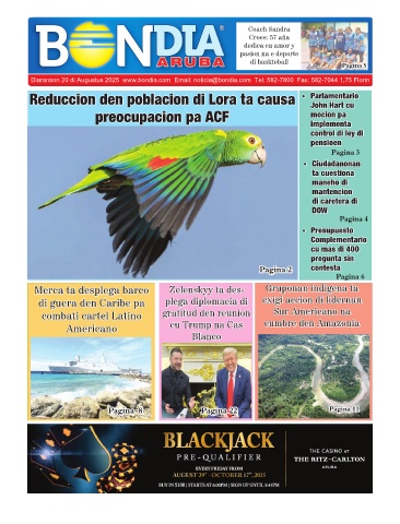 Diaranson 20 di Augustus 2025 www.bondia.com Email: noticia@bondia.com Tel: 582-7800 Fax: 582-7044 1,75 Florin