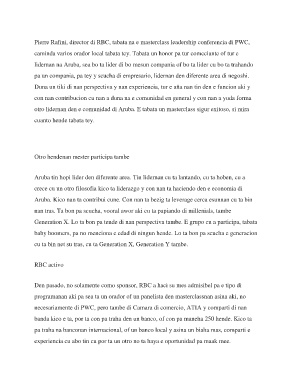 otro lidernan den e comunidad di Aruba. E tabata un masterclass sigur exitoso, si mira