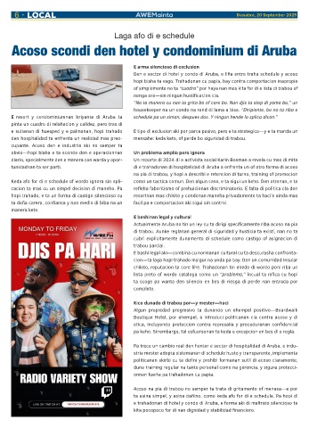 tunidadnan ta ser parti. di e trahadonan di hospitalidad di Aruba a enfrenta un of otro forma di acoso