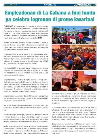 General Manager, Joe Najjar, a presenta e Happiness Award, ento di e metodo HEART como tambe e iniciativa ‘Make It