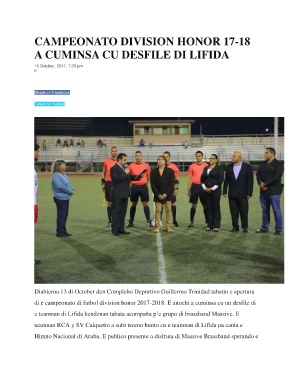 di e campeonato di futbol division honor 2017-2018. E anochi a cuminsa cu un desfile di
