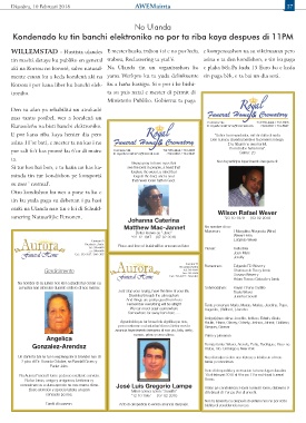 Na Aurora Funeral Home pa boso exellente servicio. 10 di februari 2018 di 9’or pa 11’or na Royal Funeral