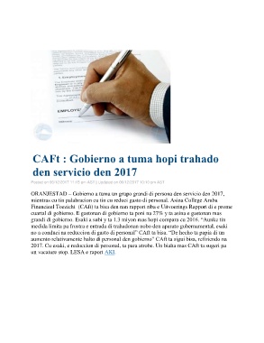 mientras cu tin palabracion cu tin cu reduci gasto di personal. Asina College Aruba