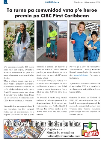 scoge e heroe den nos comunidad na storia nan cu nos a ricibi” senora site www.cibcfcib.com, Facebook y