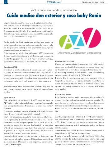 Ora bo tin un aprobacion, AZV ta cubri: pasashi (ida y buel- AZV tin comprension p’e situacion di baby Ronin y e mayor-