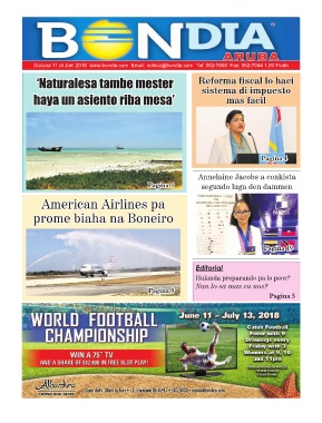 Dialuna 11 di Juni 2018 www.bondia.com Email: noticia@bondia.com Tel: 582-7800 Fax: 582-7044 1,50 Florin
