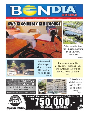 Diabierna 1 di September 2017 www.bondia.com Email: noticia@bondia.com Tel: 582-7800 Fax: 582-7044 1,50 Florin