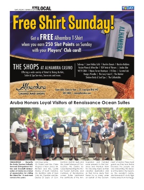 the Aruba Tourism Authority Mr. Robert and Mrs. Claire Mrs. Janet Salamon of Con- some presents to the hon- guests say they love Aruba