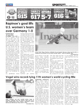 World champion and gold medalist Kristina Vogel of straight against the Austra- it. She won the first, third, the men’s points race title,