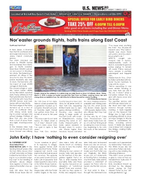 across the nation, reported People stand at the entrance to a pizza shop as water floods a street, in Scituate, Mass., Friday, the Jan. 4 storm,” when a