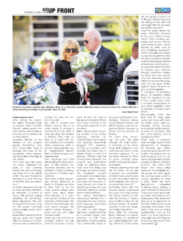 Continued from Front turning this pain into ac- ware. It was not clear if focus on healing right now." flag" laws to keep guns