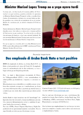 DOS (2) empleado di oficina na Aruba Bank N.V. na