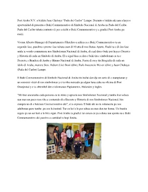 Padu del Caribe tabata contento di por a ricibi e Buki Conmemorativo y a gradici Post Aruba pa