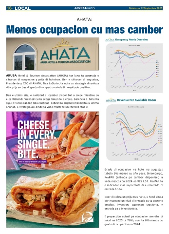 ARUBA Hotel & Tourism Association (AHATA) tur luna ta acumula e