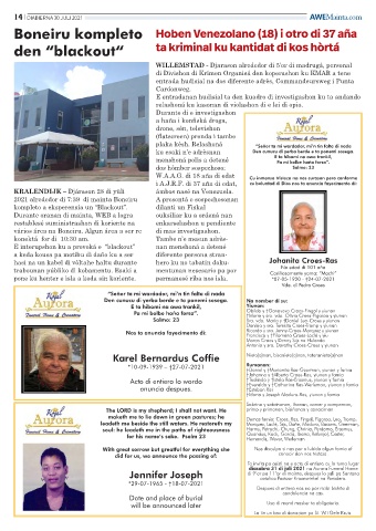 diasabra 31 di juli 2021 na Aurora Funeral Home