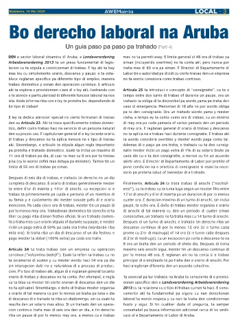 orario di trabao y descanso no ta conta. Por ehempel, e regla Ta esencial pa tur trahado na Aruba ta consciente di e provisi-