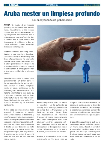 apatico, transparencia ta keda falta, y fica mecanismonan di integridad. sino un condicion basico pa recupera-