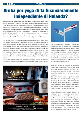 di Aruba. Si Aruba ta aspira na independencia financiero completo, e mester