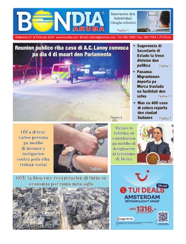 Diabierna 21 di Februari 2025 www.bondia.com Email: noticia@bondia.com Tel: 582-7800 Fax: 582-7044 1,75 Florin