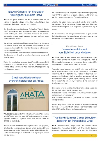 (AHATA) is het toeristisch verblijf op Aruba sinds 2018 sterk