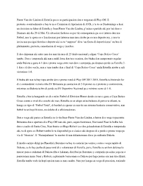 Pierre Van der Linden di Estrella pa cu su participacion den e weganan di Play-Off. E
