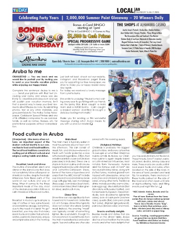 Aruban cultural identity is our con- most households around noon or in (Religious) Holidays