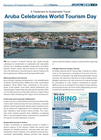 nizes the importance of preserving its natural treasures for As Aruba observes World Tourism Day, it stands as a testa-