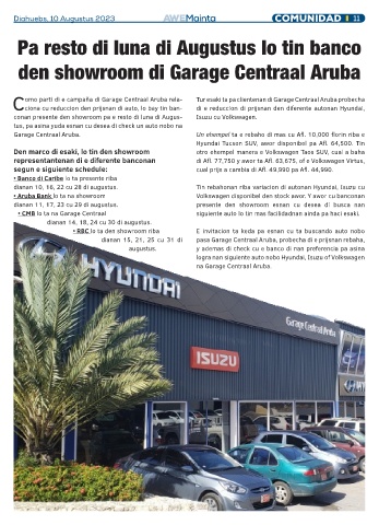 dianan 15, 21, 25 cu 31 di pasa Garage Centraal Aruba, probecha di e prijsnan rebaha,