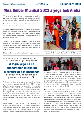 Miss Ambar Mundial 2023 a yega bek Aruba
