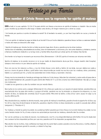 Den nomber di Cristo Hesus nos ta reprende tur spirito di malesa