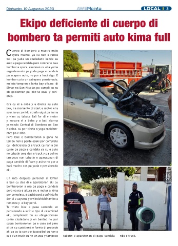 sali c’un truck cu no tin awa y tampoco tabatin e aparatonan di paga candela riba e truck.